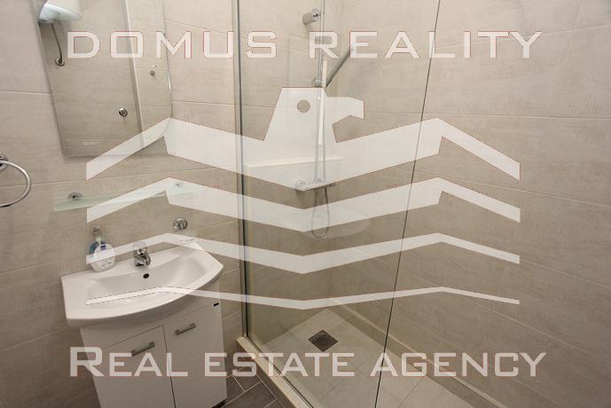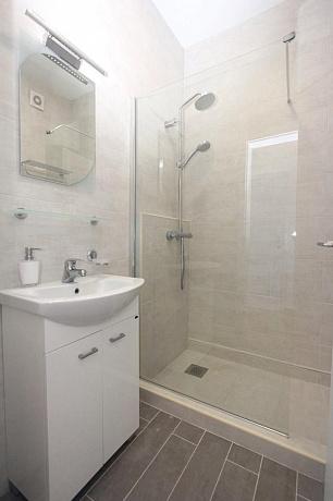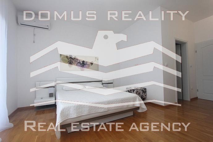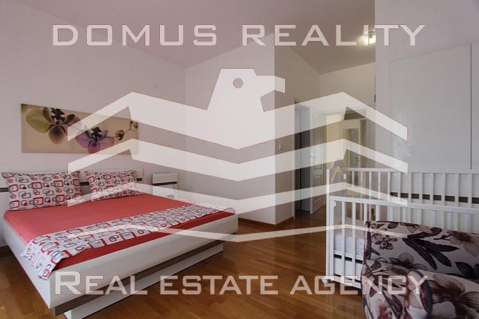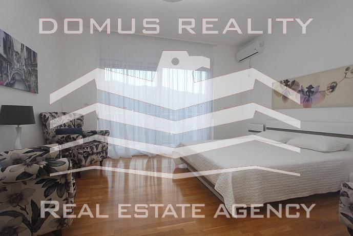 Dispozice bytu: dvě ložnice, dvě koupelny, obývací pokoj, kuchyň, chodba a prostorná střešní terasa 70 m2 s letní kuchyní. Z bytu je krásný výhled na moře.