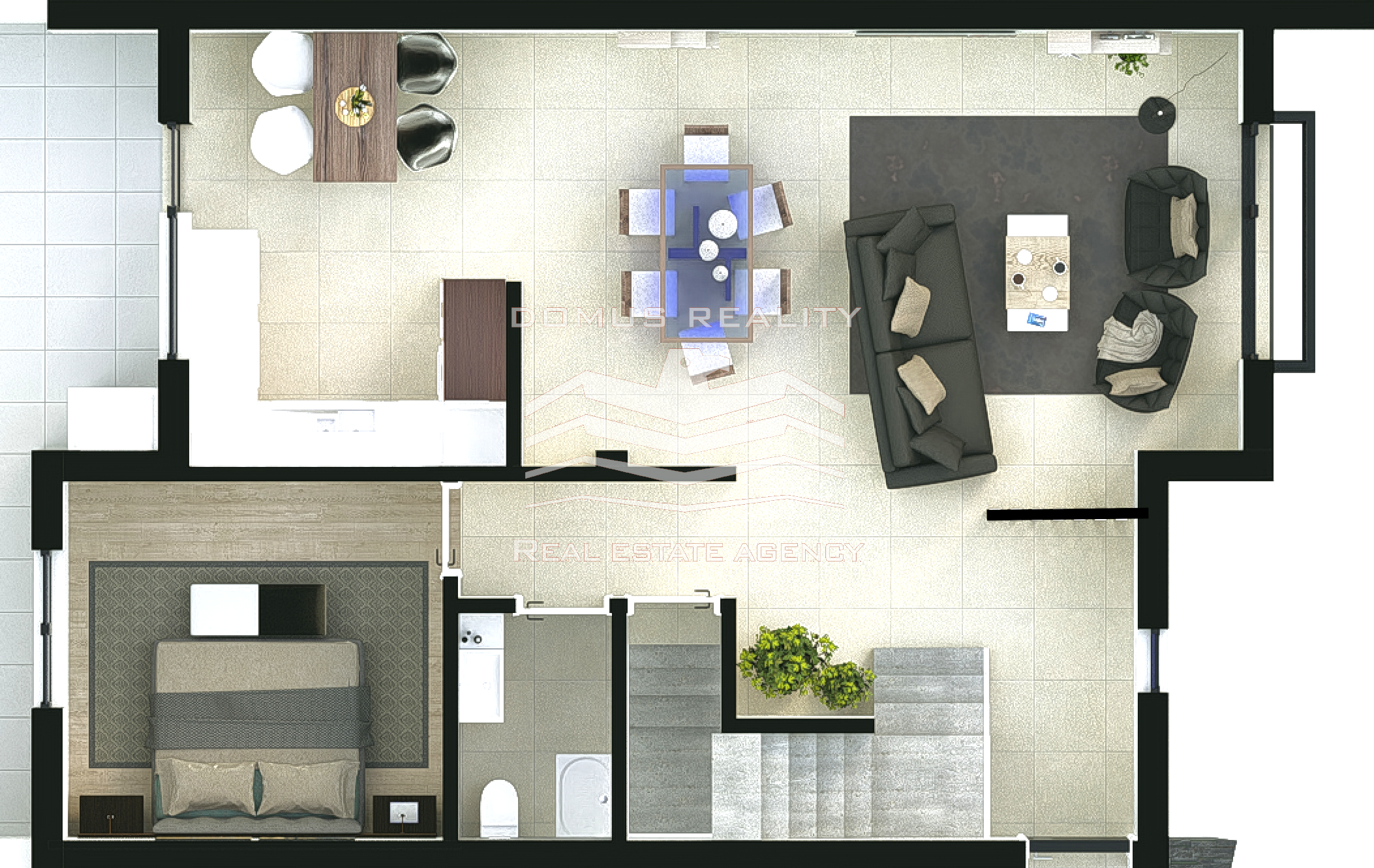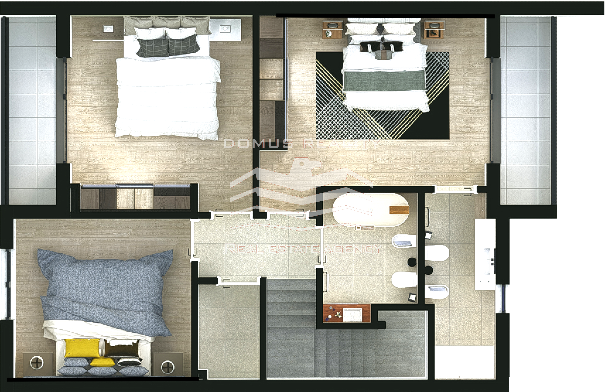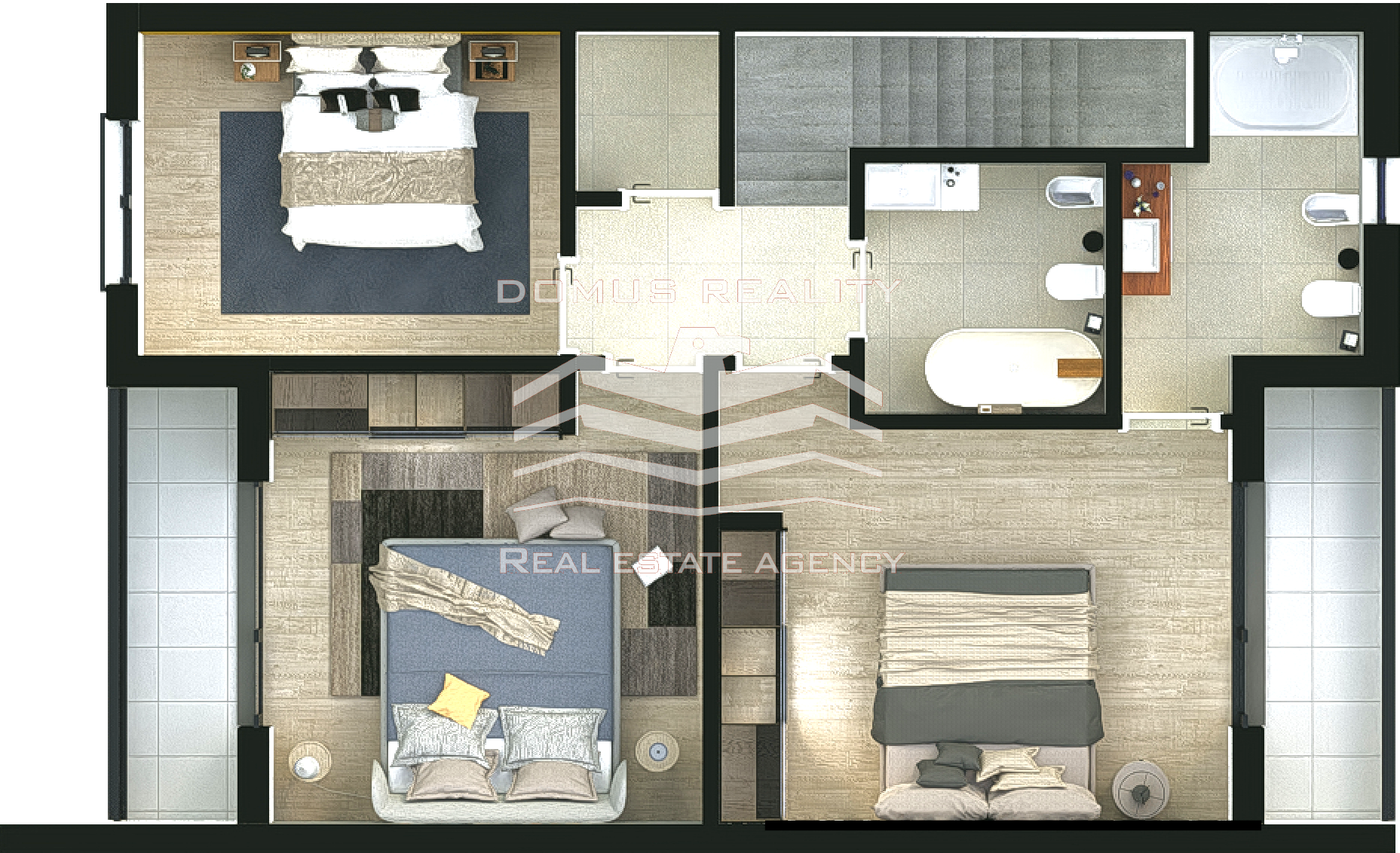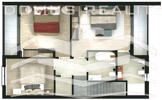 Šest vil v rezidenci je rozloženo na třech úrovních (přízemí, první patro a suterén).