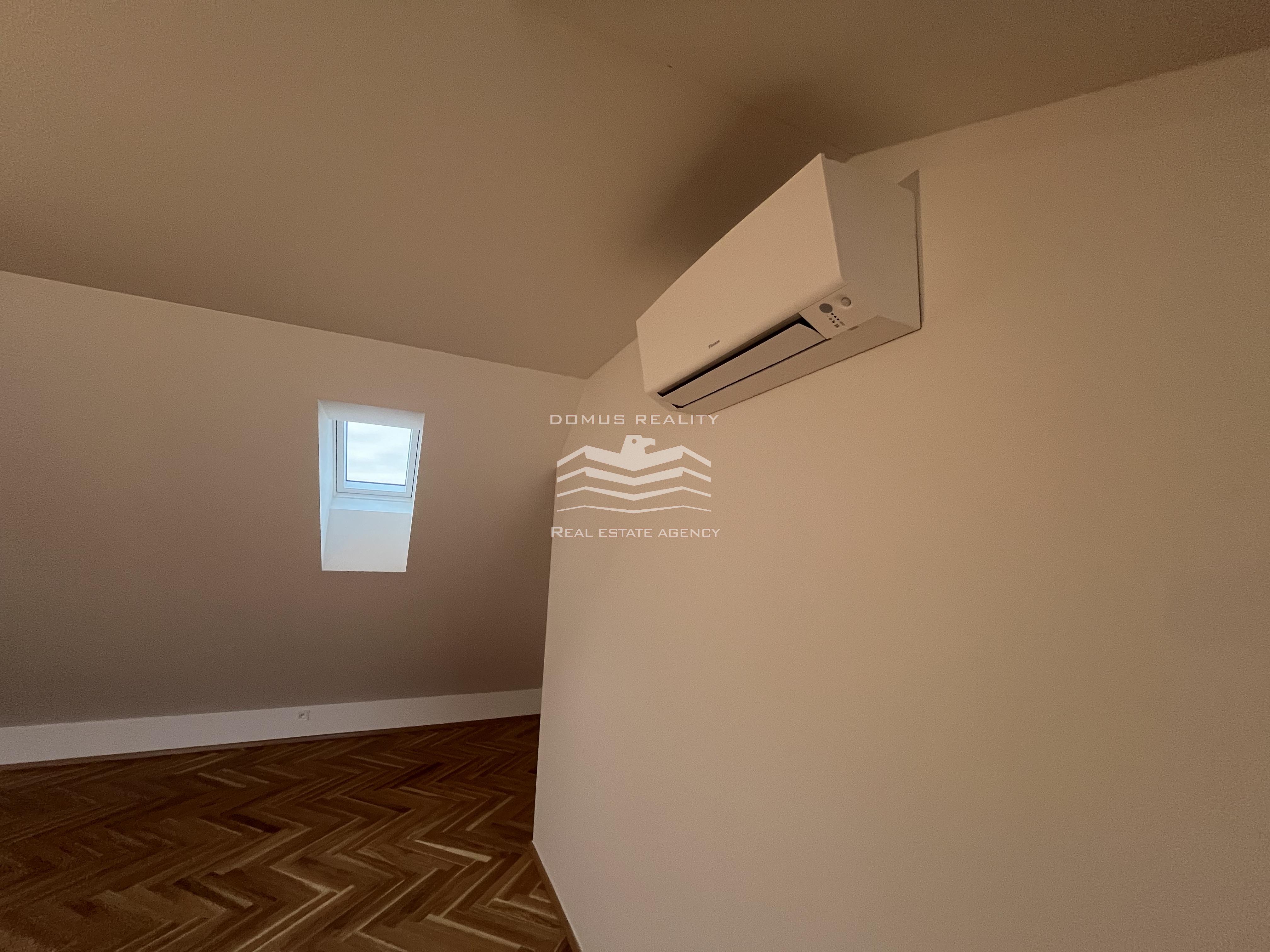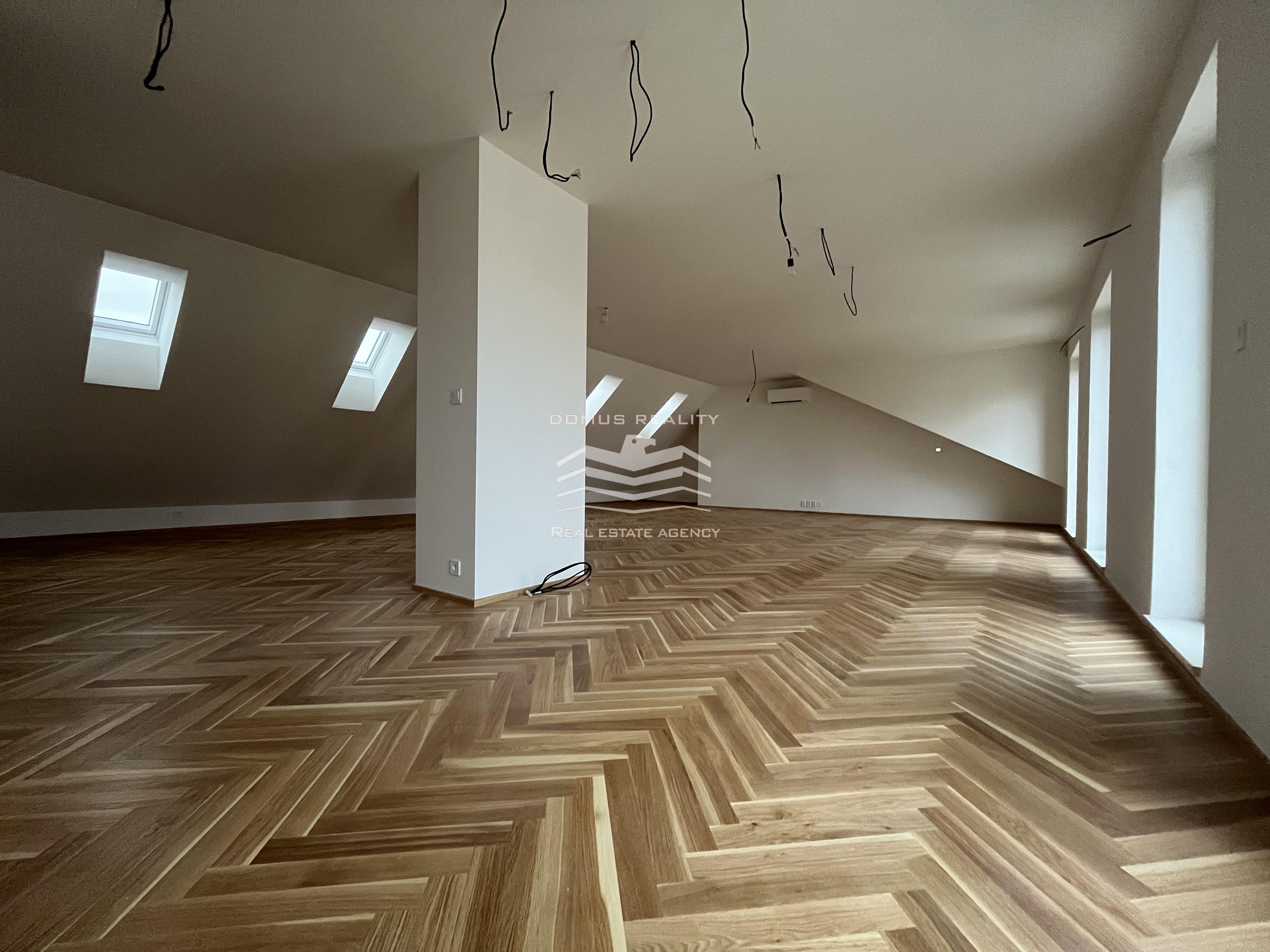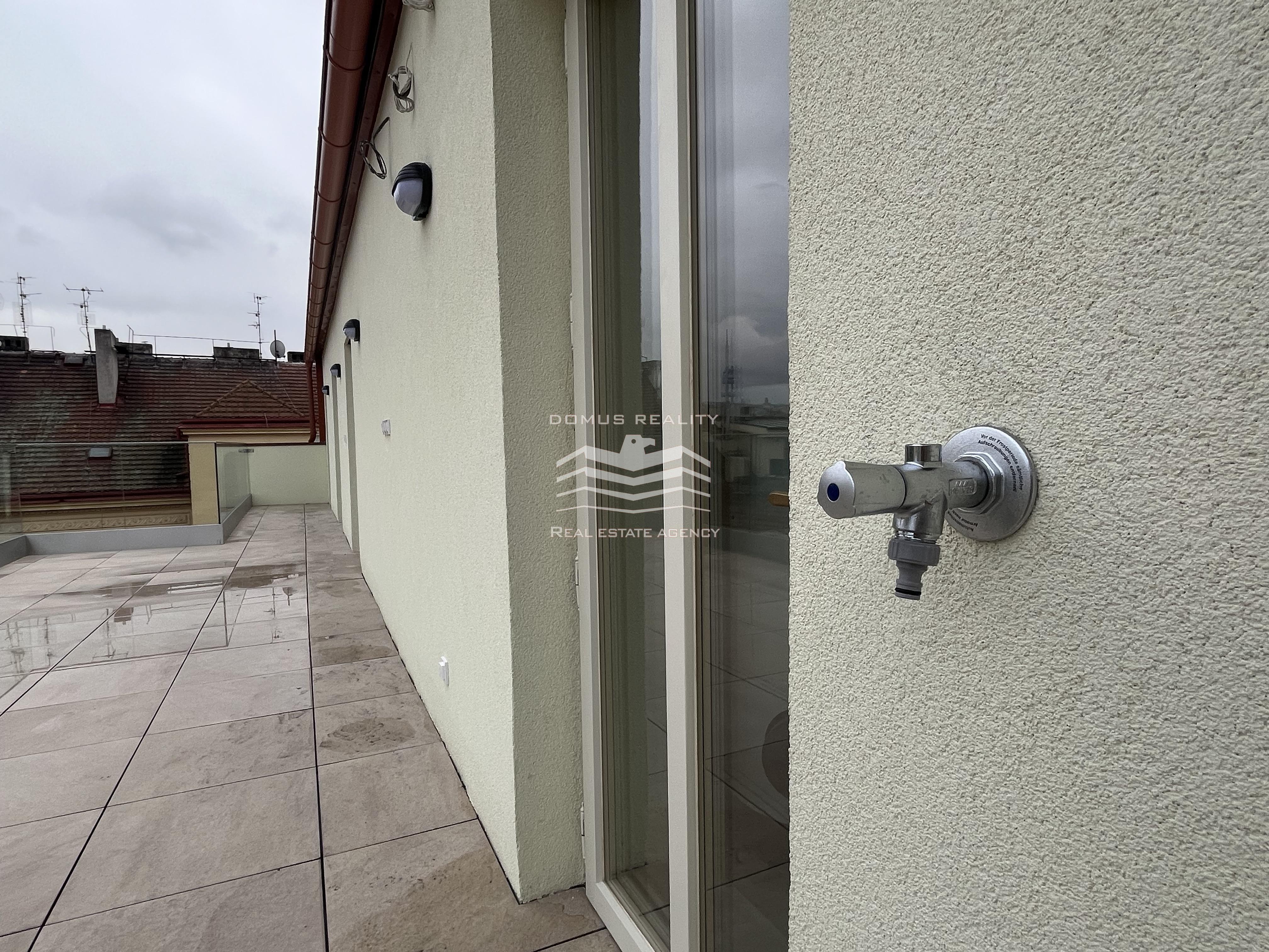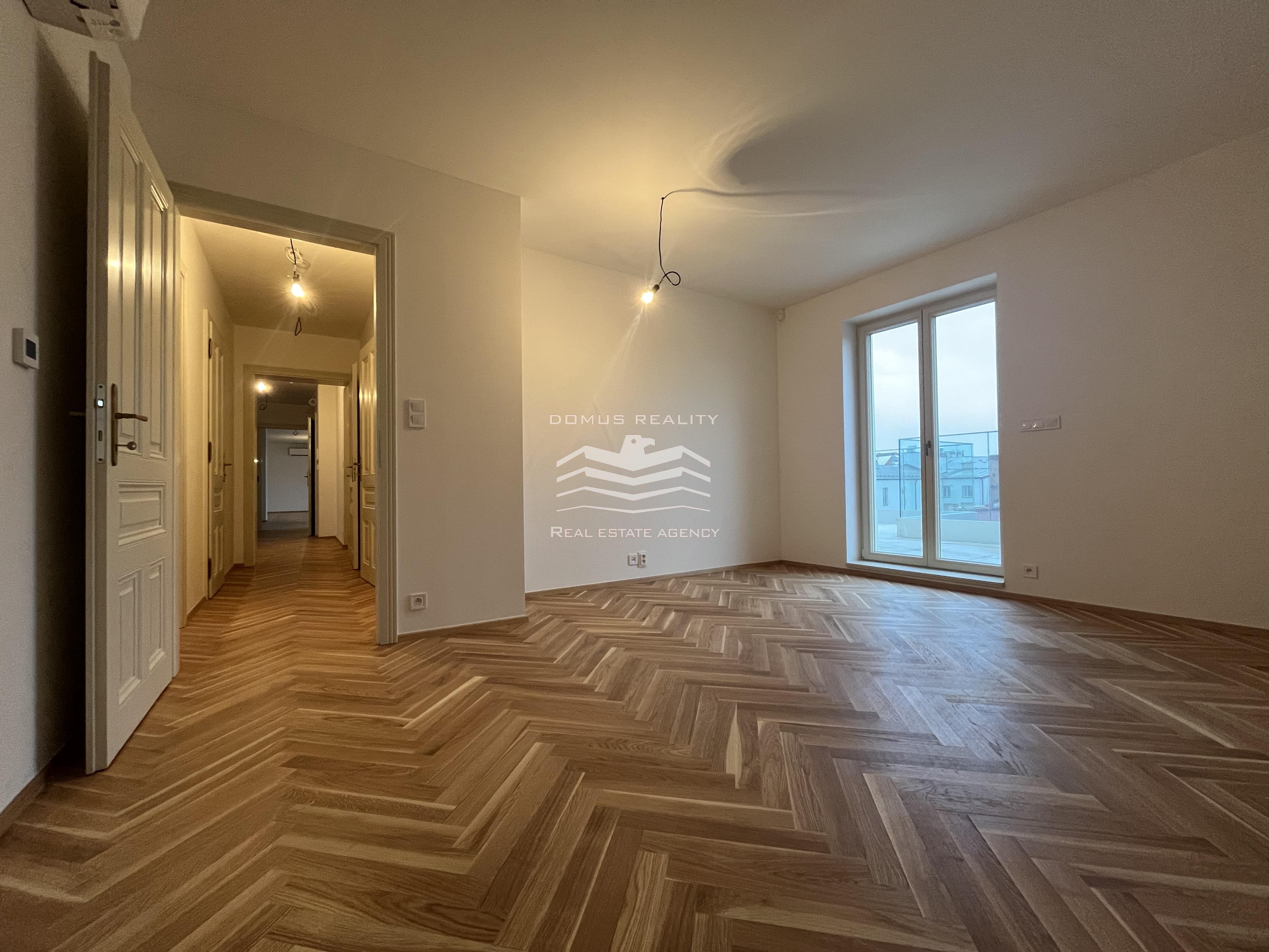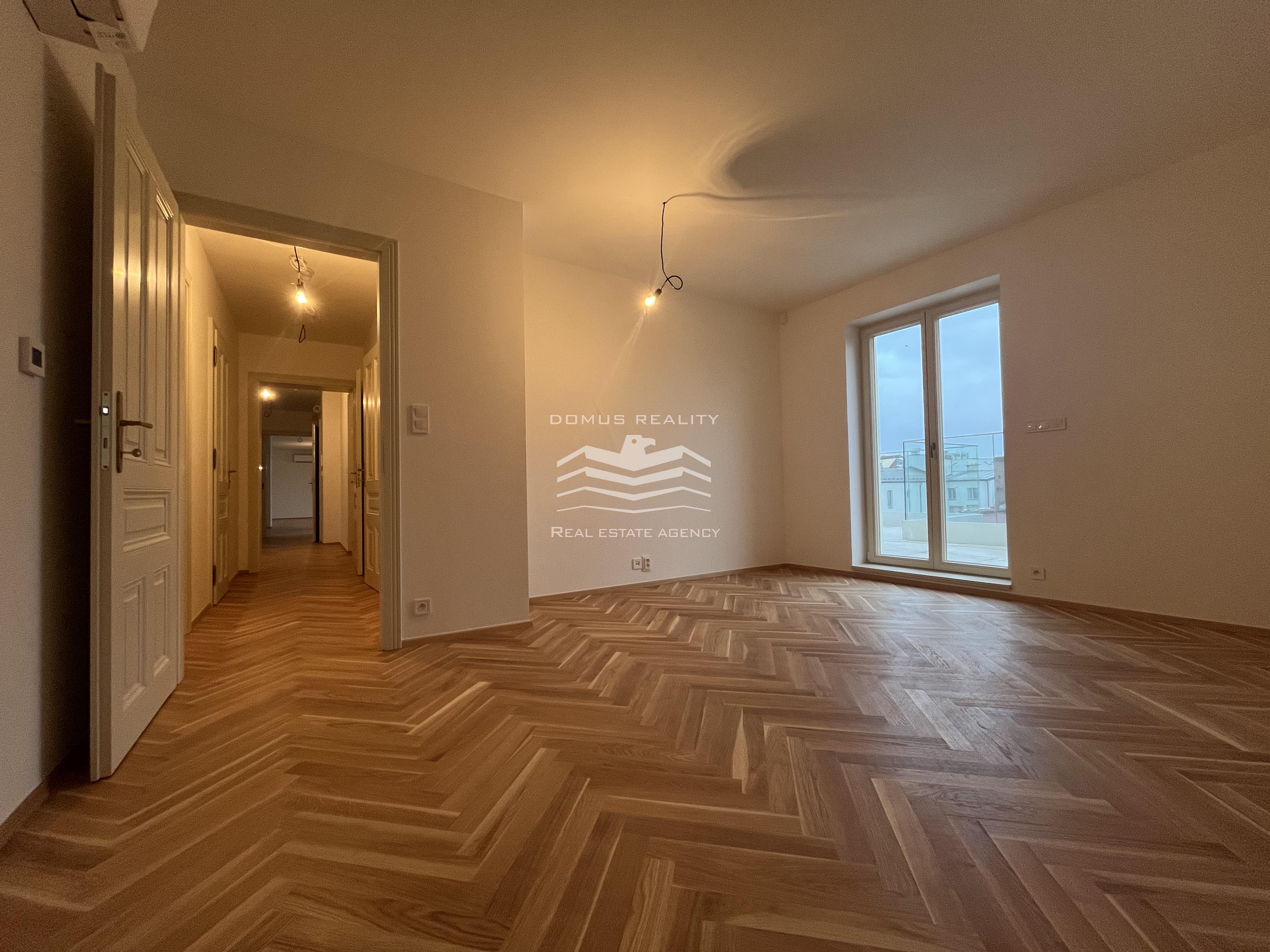 Nový rozlehlý a klimatizovaný byt s vlastní terasou se rozkládá po celém posledním patře.