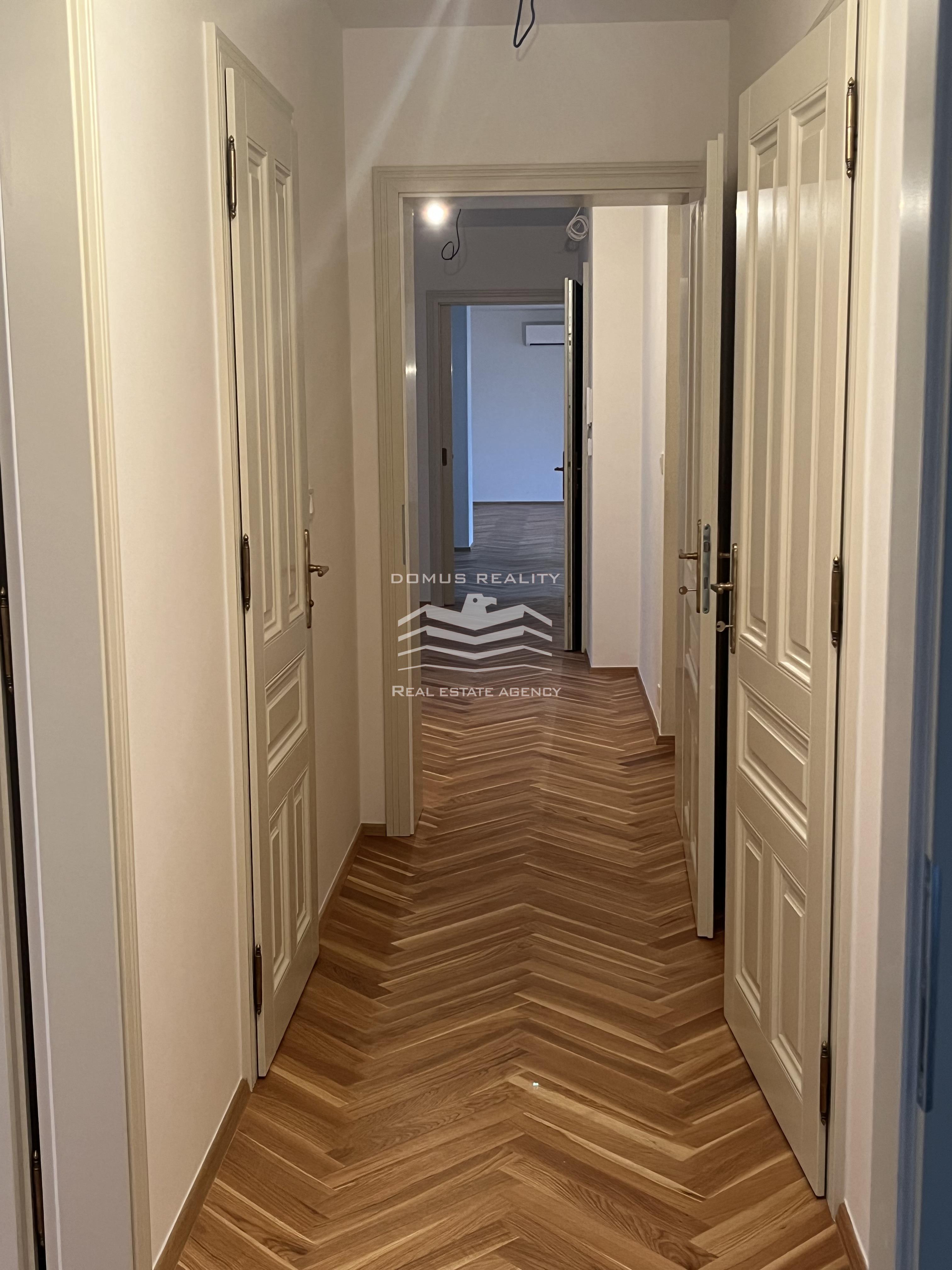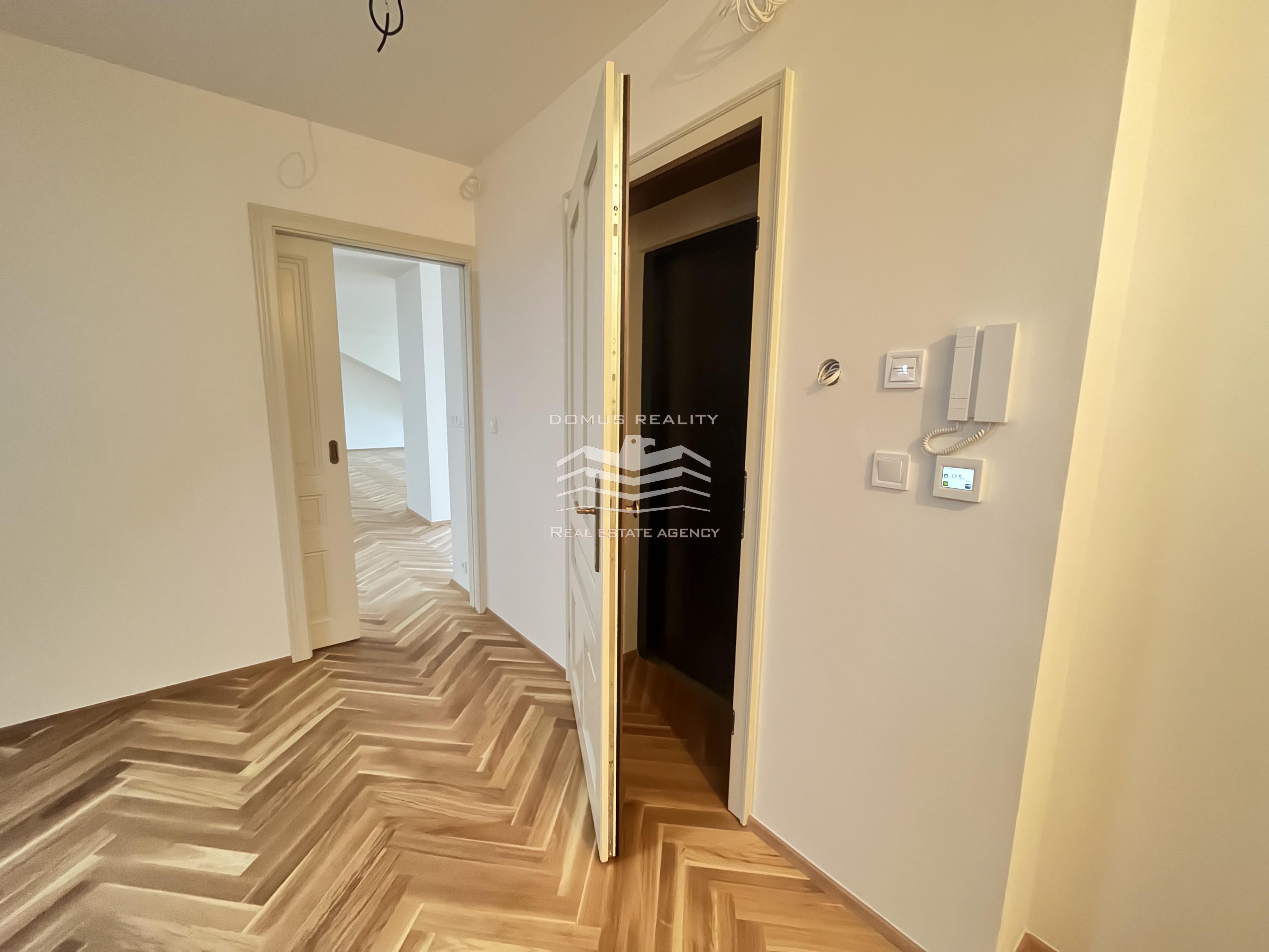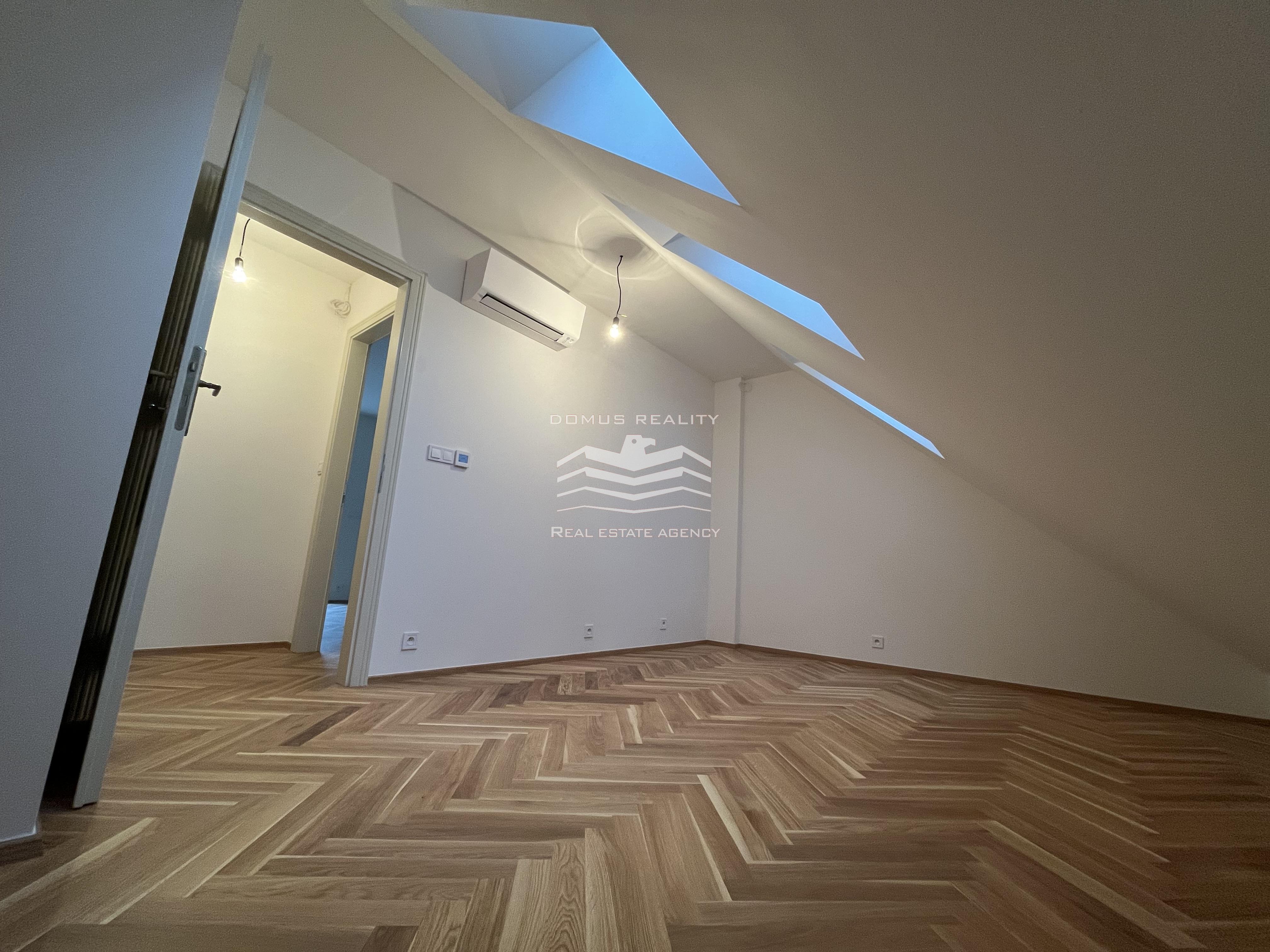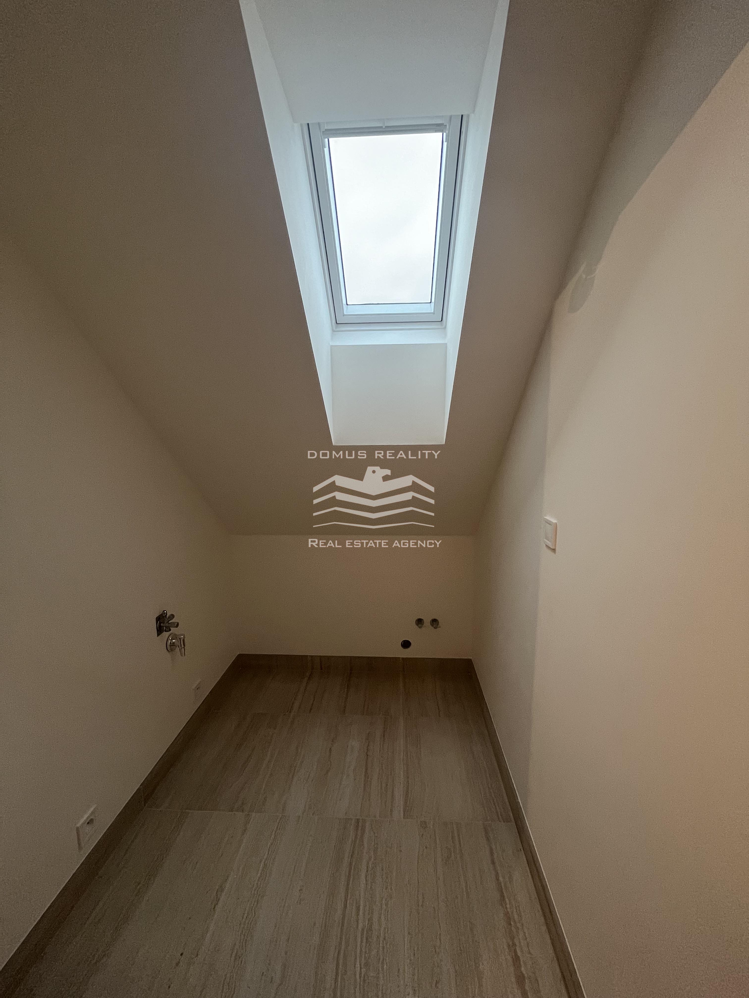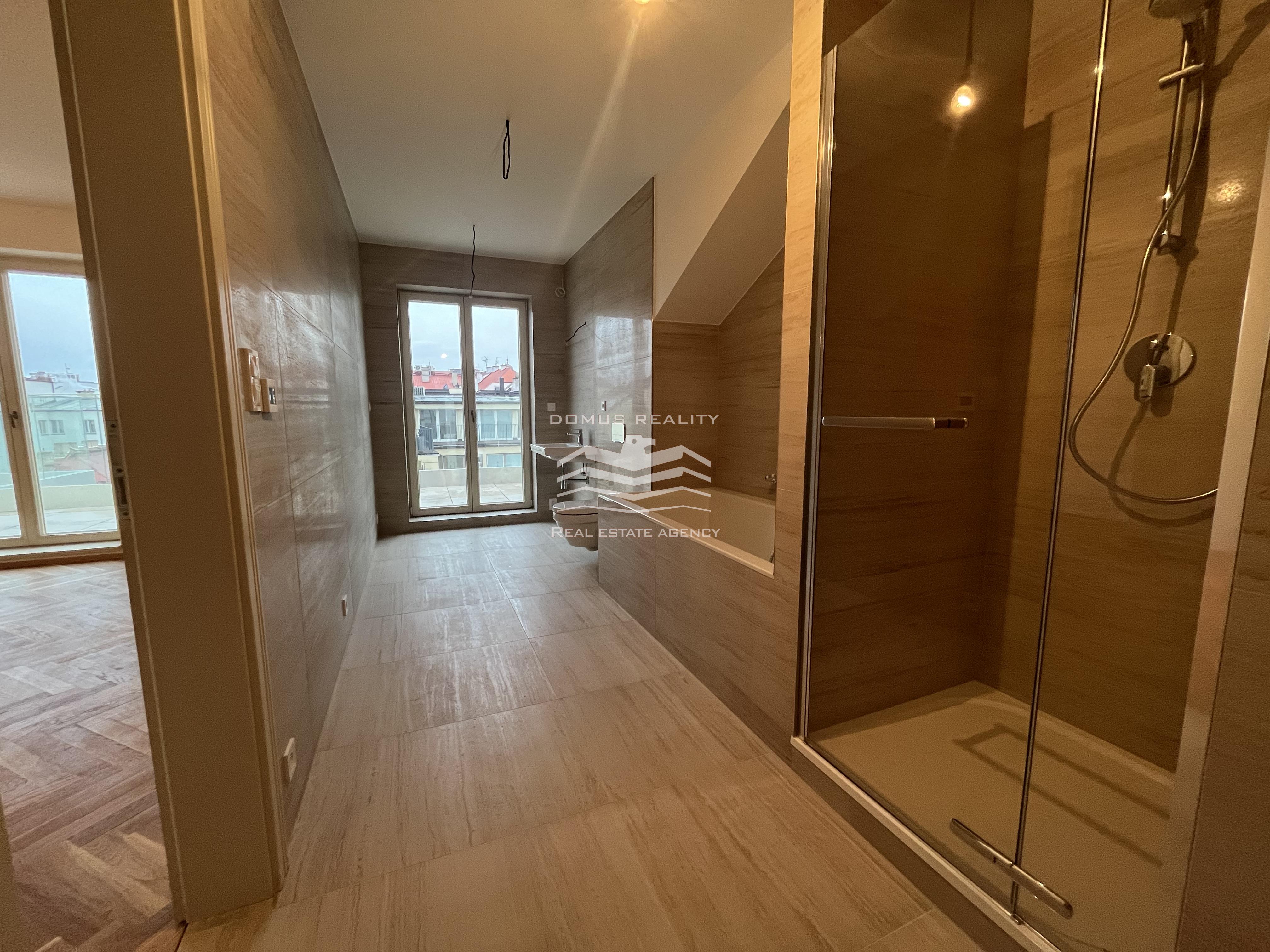 Nový rozlehlý a klimatizovaný byt s vlastní terasou se rozkládá po celém posledním patře.