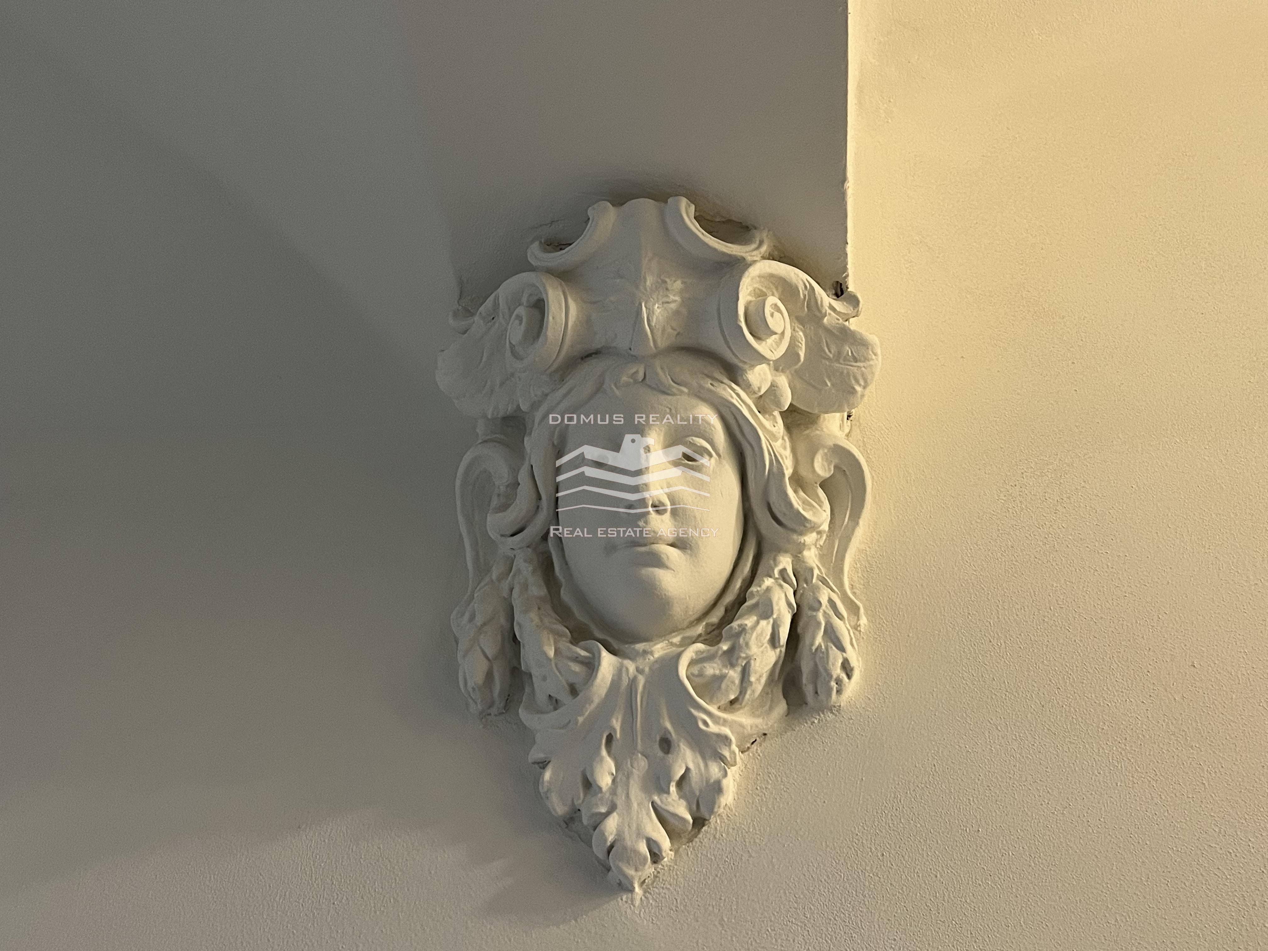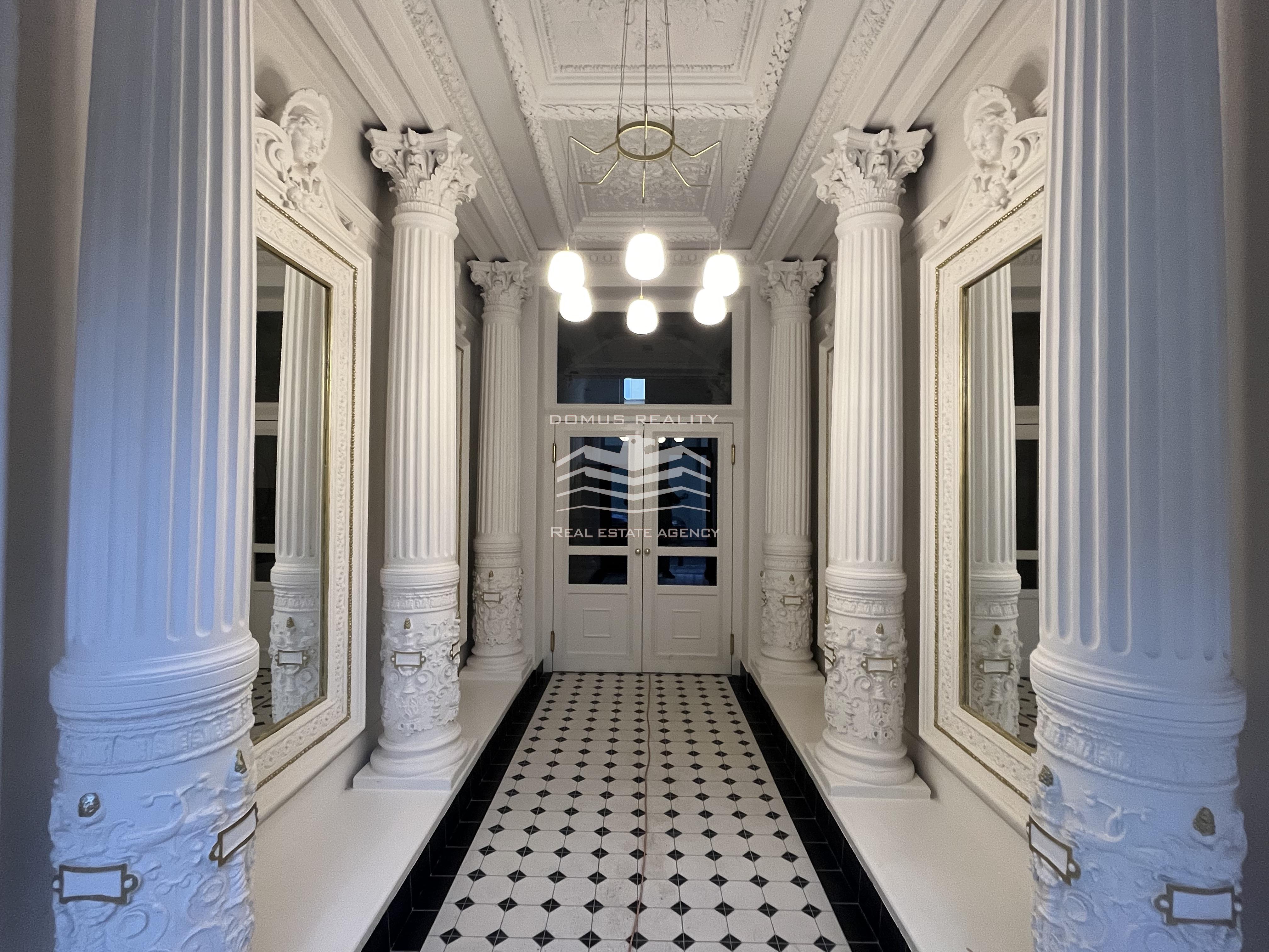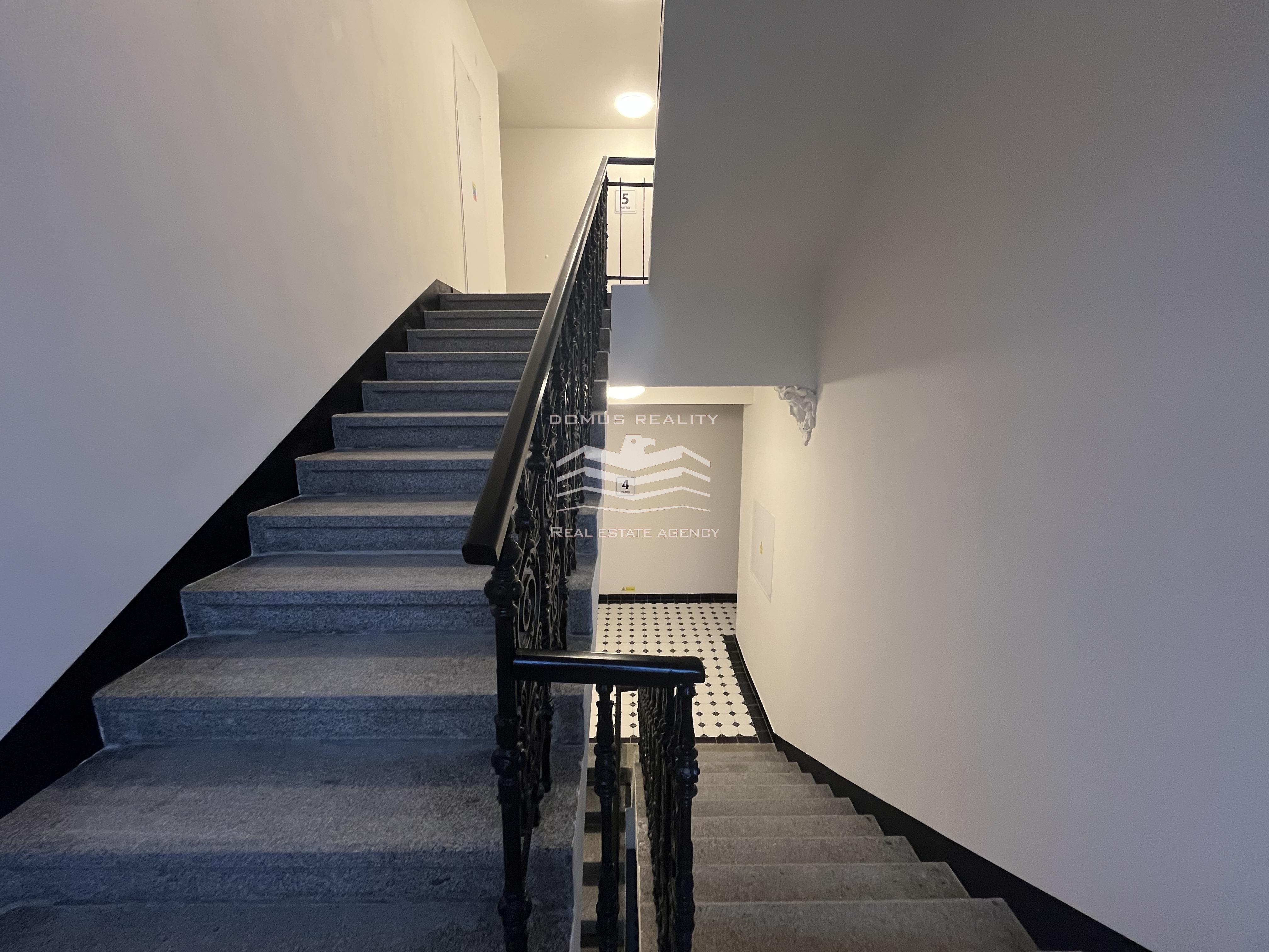 Nový rozlehlý a klimatizovaný byt s vlastní terasou se rozkládá po celém posledním patře v kompletně zrekonstruovaném domě s výtahem. Byt se nachází v boční ulici u pěší zóny Na Příkopě a u Václavského náměstí. Byt v sedmém patře je tvořen prostorným obývacím pokojem a přípravou na kuchyni (celkem 76 m2), hlavní ložnicí s vlastní koupelnou (možnost vestavění sauny), dalšími dvěmi menšími ložnicemi, samostatnou toaletou, koupelnou, technickou místností, chodbou a vstupní halou s přímým vstupem do výtahu. Při rekonstrukci domu byly vyměněny parkety, vstupní dveře, střešní okna a eurookna (do dvorního traktu). Bylo pořízeno elektronické podlahové vytápění (Heatflow), nové zařízení koupelny (Villeroy & Boch) a klimatizace (Daikin). K bytu také přísluší sklep.