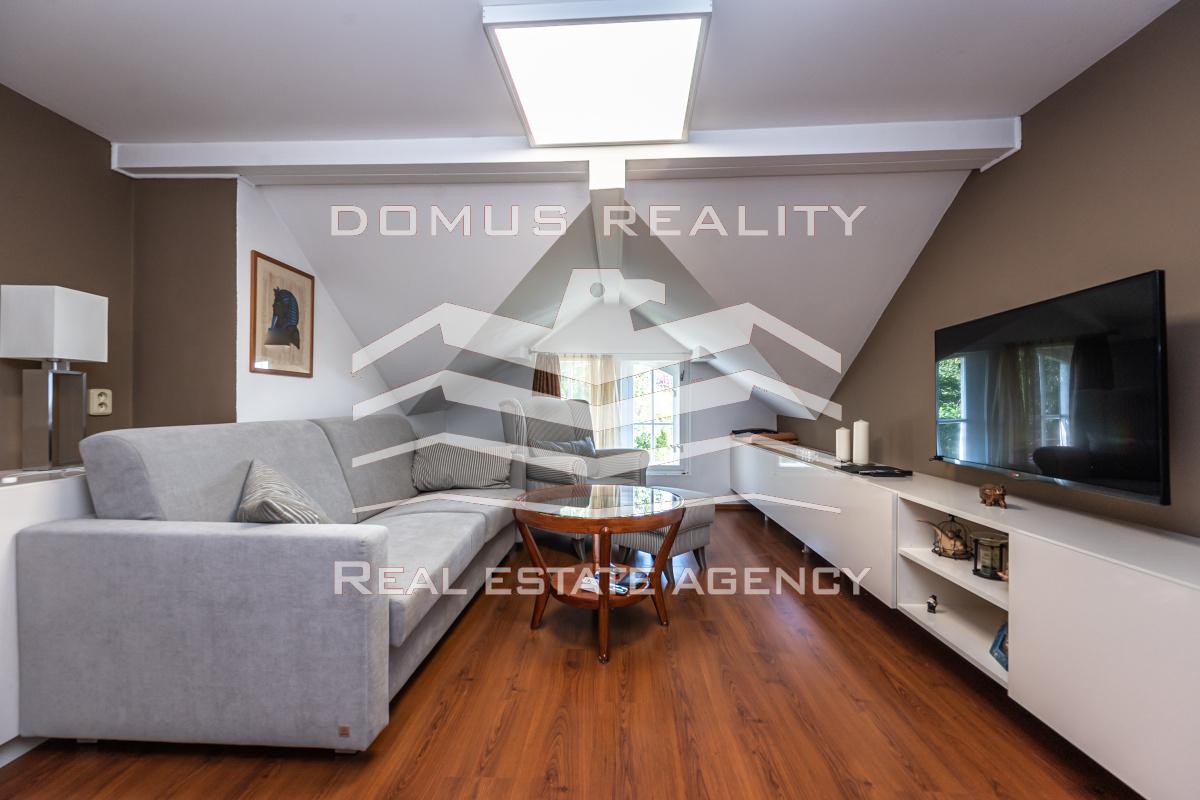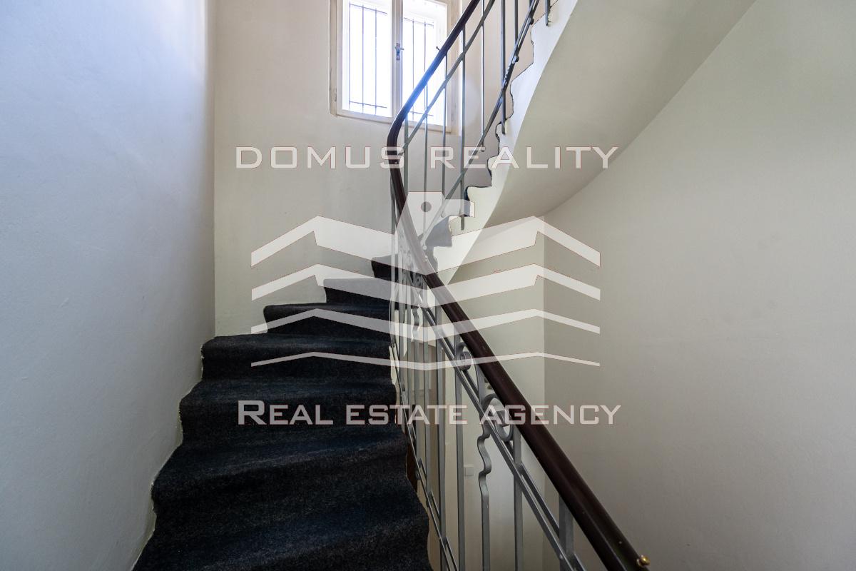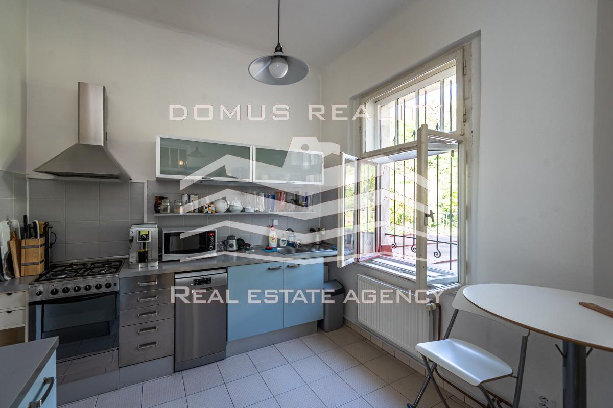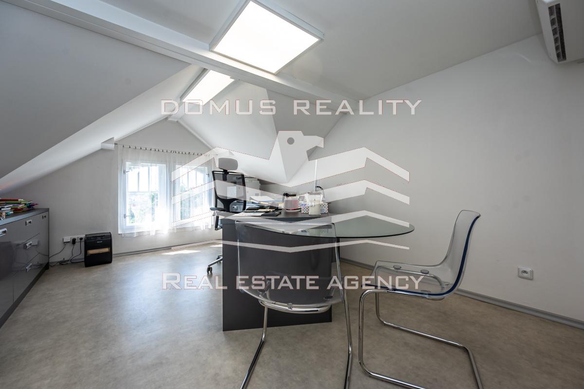 Druhé patro slouží jako kompletně vybavený byt s klimatizací a nádherným výhledem na Prahu.
