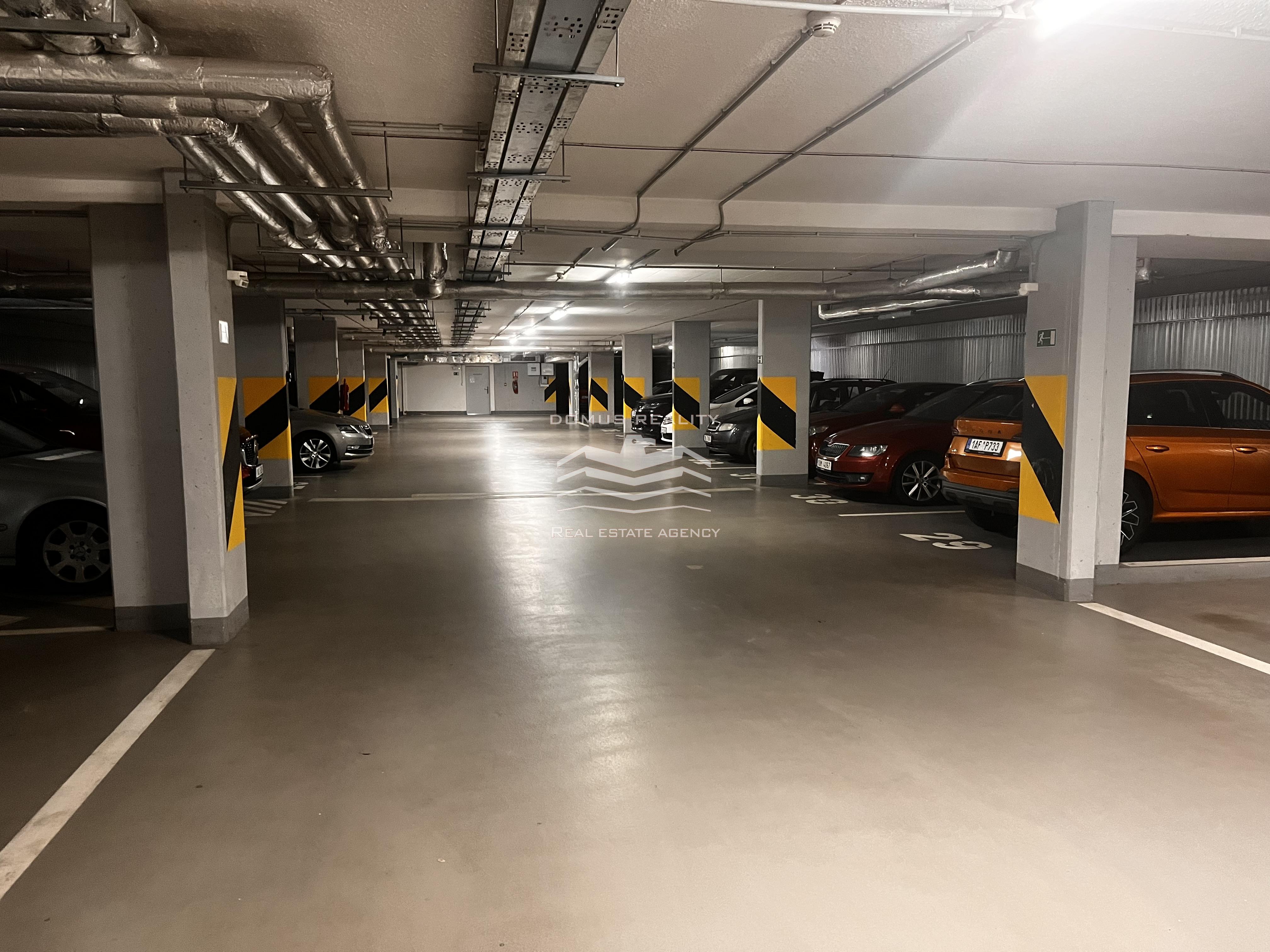 Byt disponuje 80 m2 podlahové plochy, velkým balkonem, garážovým parkovacím stáním (v ceně) a sklepní místností.