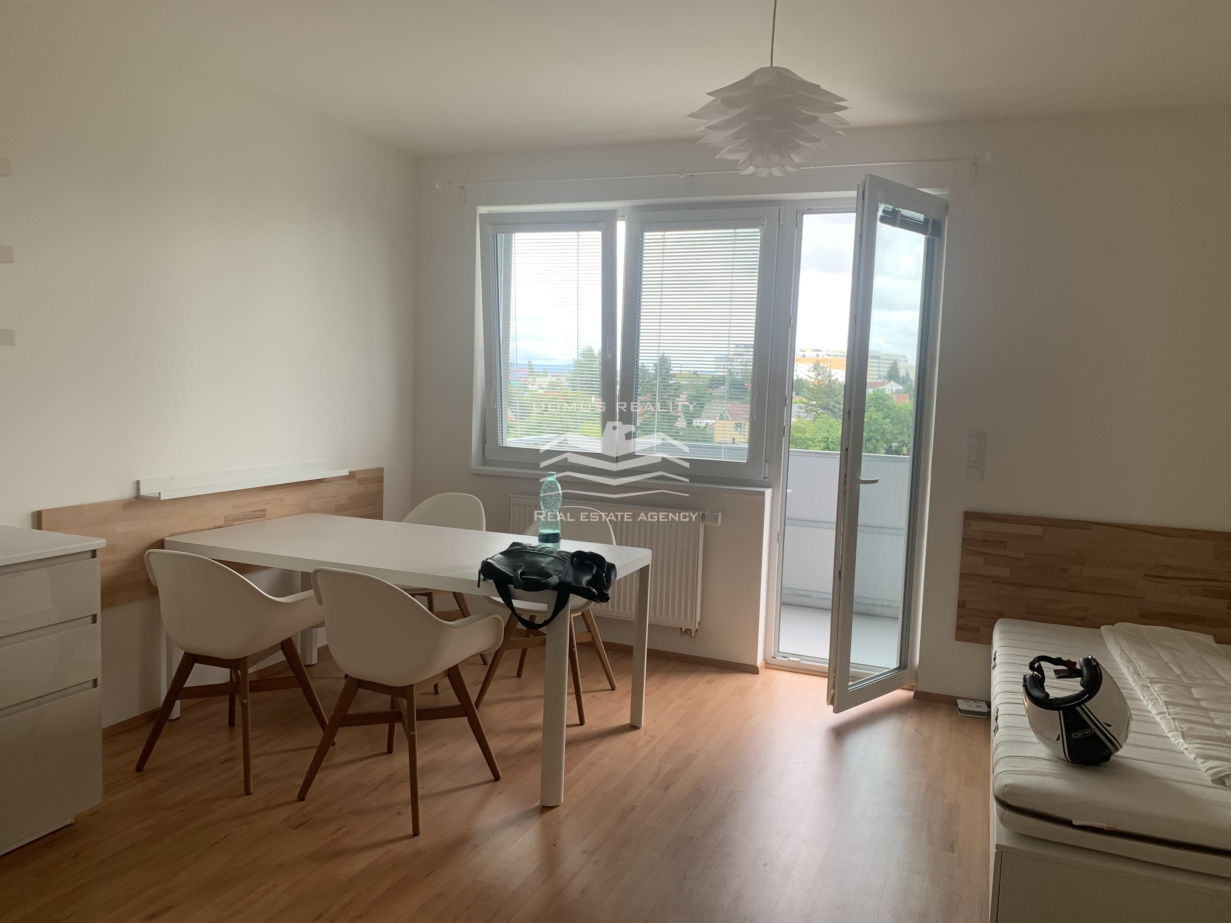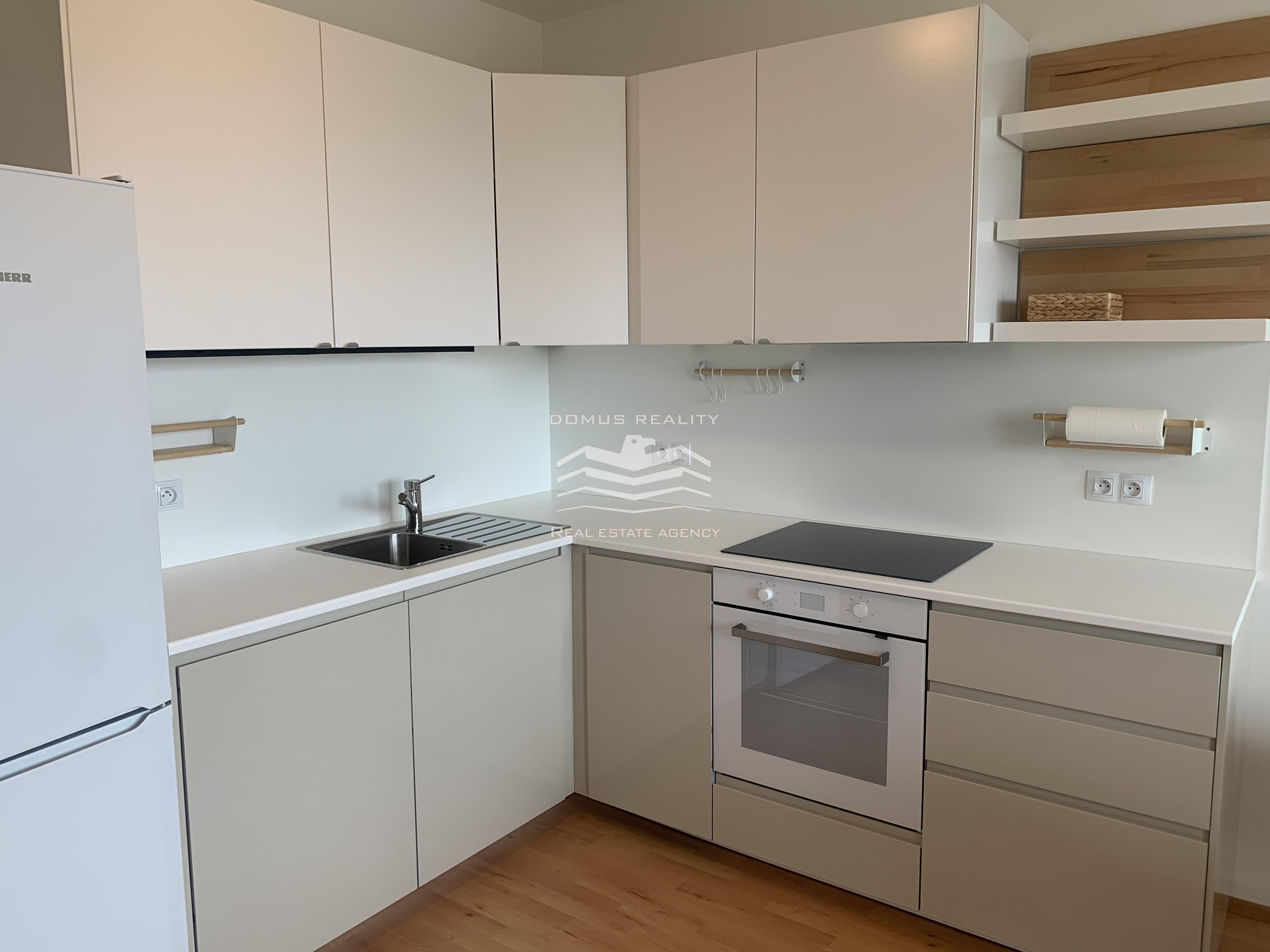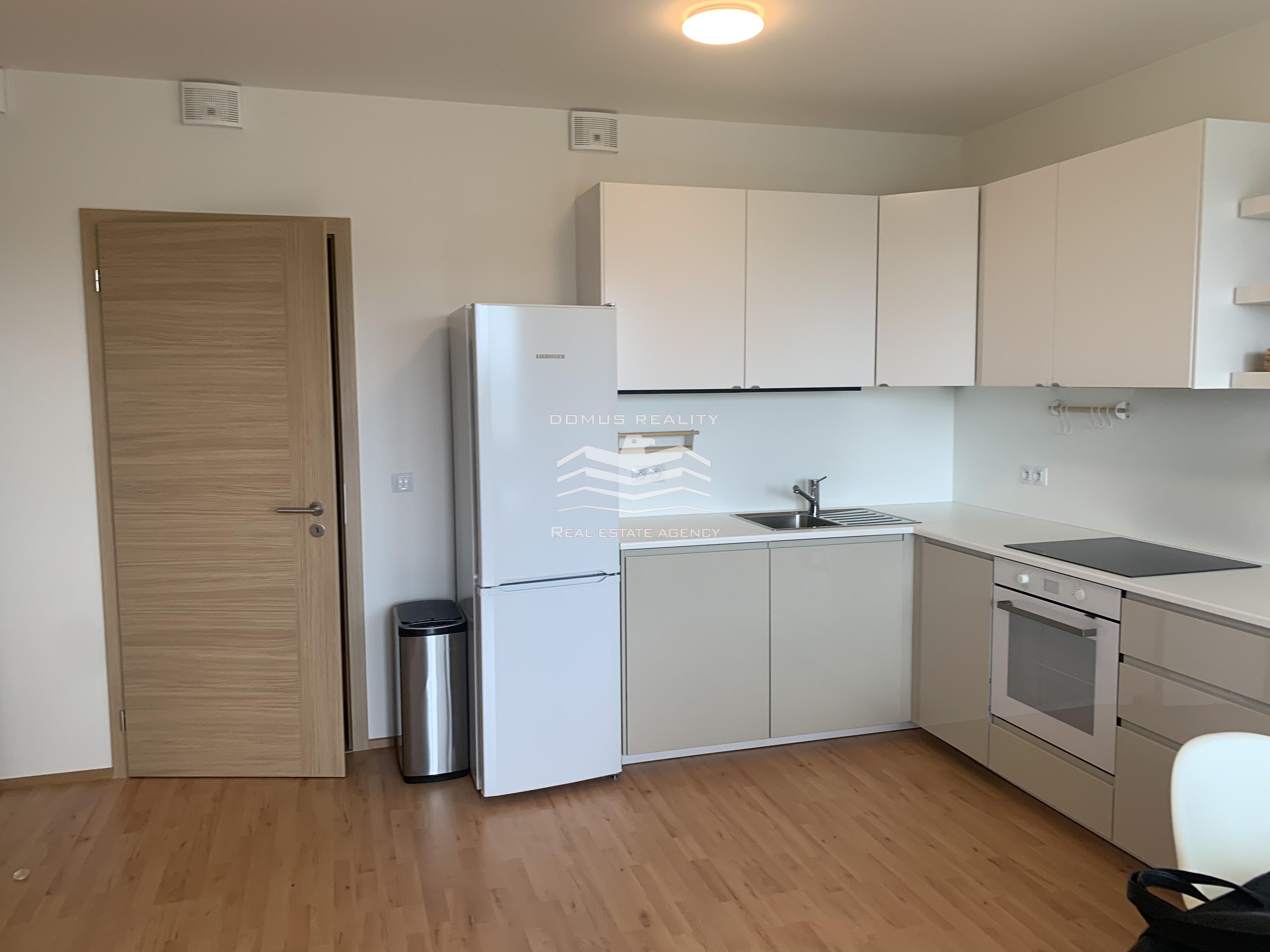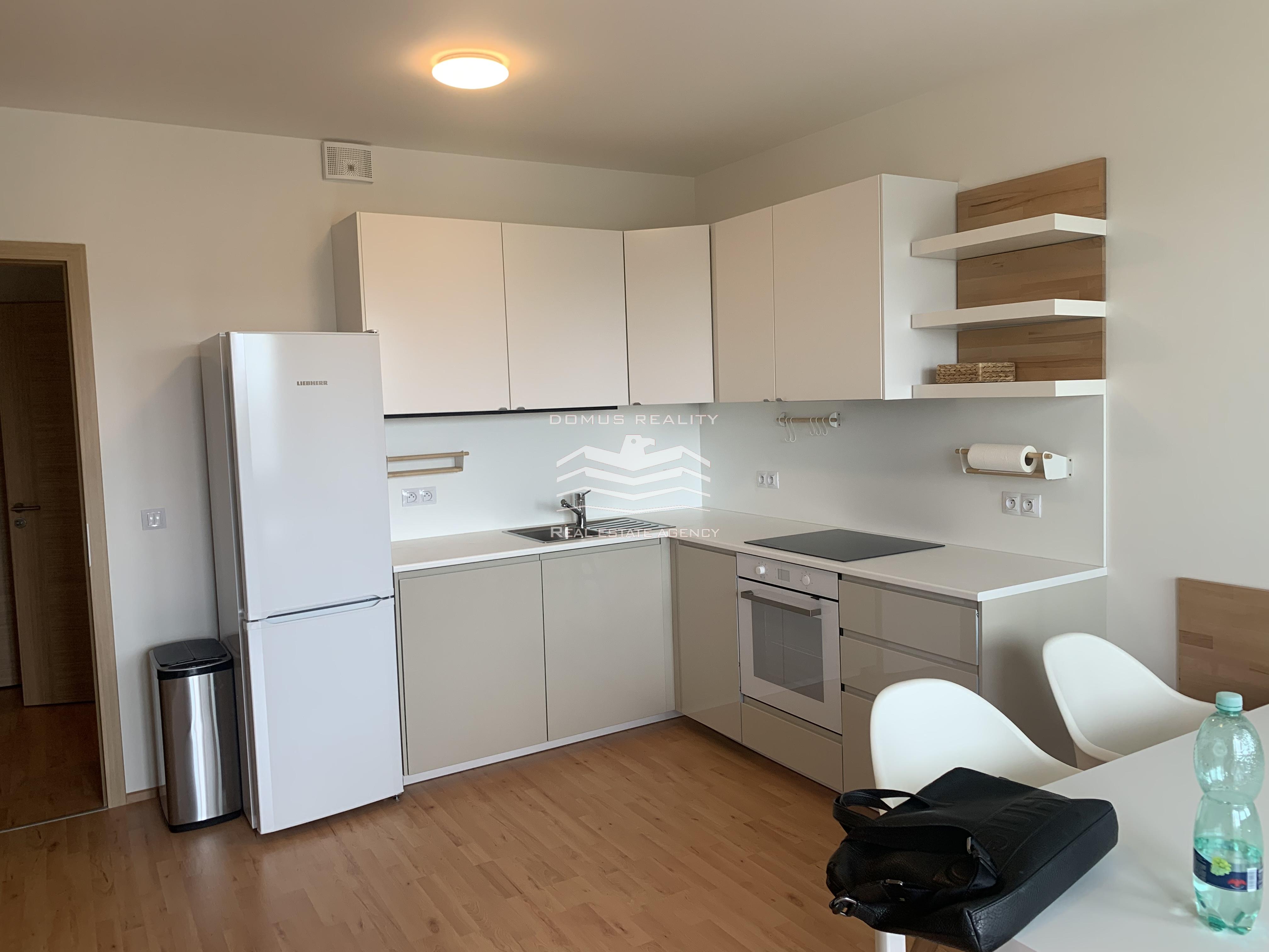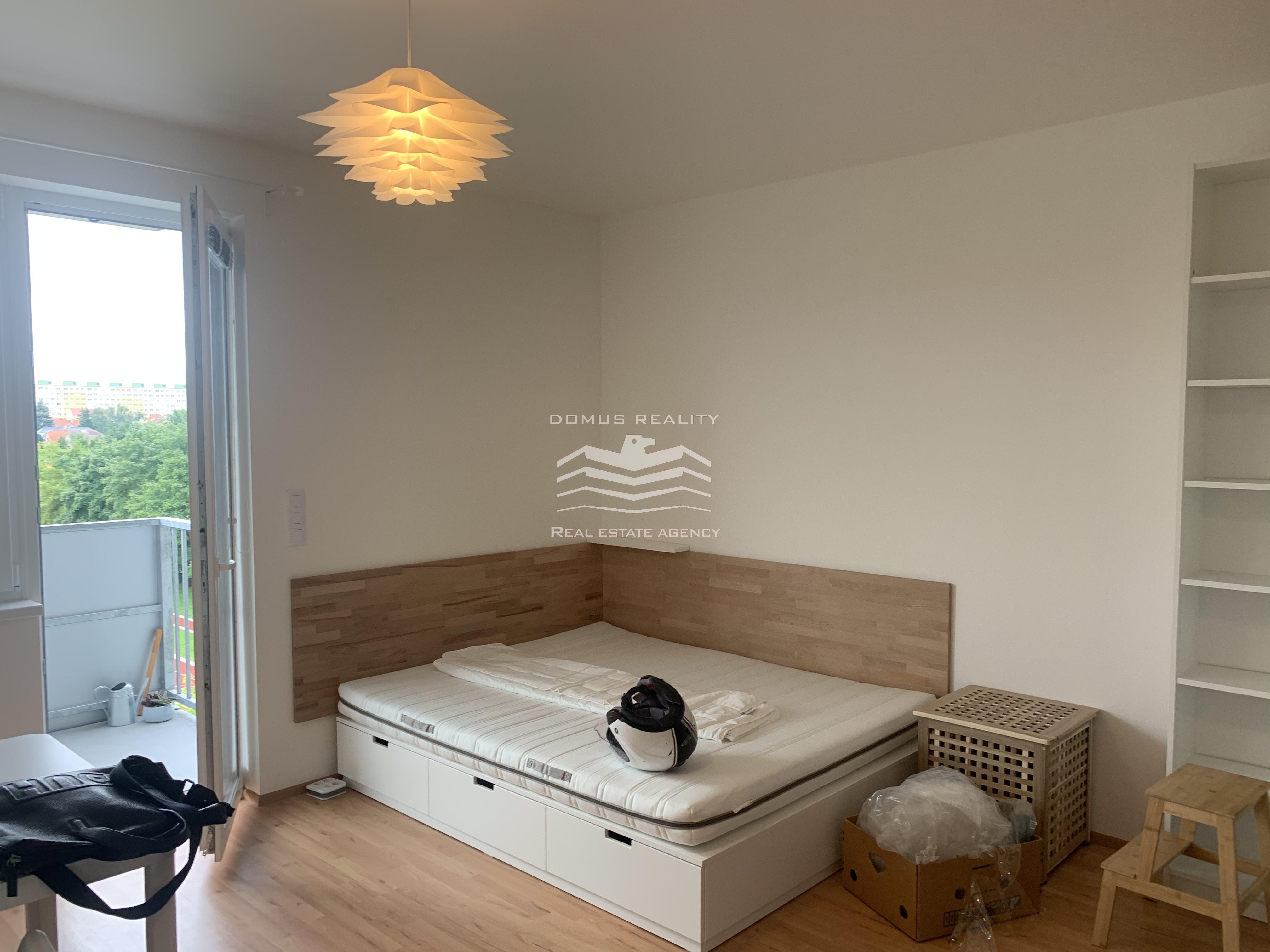 Nabízíme k pronájmu kompletně zařízený prostorný byt 1+kk, s balkonem a garaží , o ploše 40 m2, ve 5. podlaží cihlového domu s výtahem z roku 2021, ulice Hornoměcholupská.