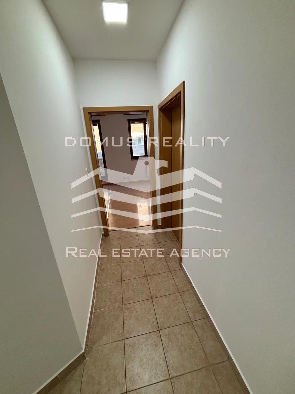 Dispozice bytu zahrnuje prostornou vstupní chodbu, zcela nově zrekonstruovanou koupelnu se sprchovým koutem a toaletou, samostatný neprůchozí pokoj a obývací prostor s moderním kuchyňským koutem, odkud je přímý vstup na terasu.
