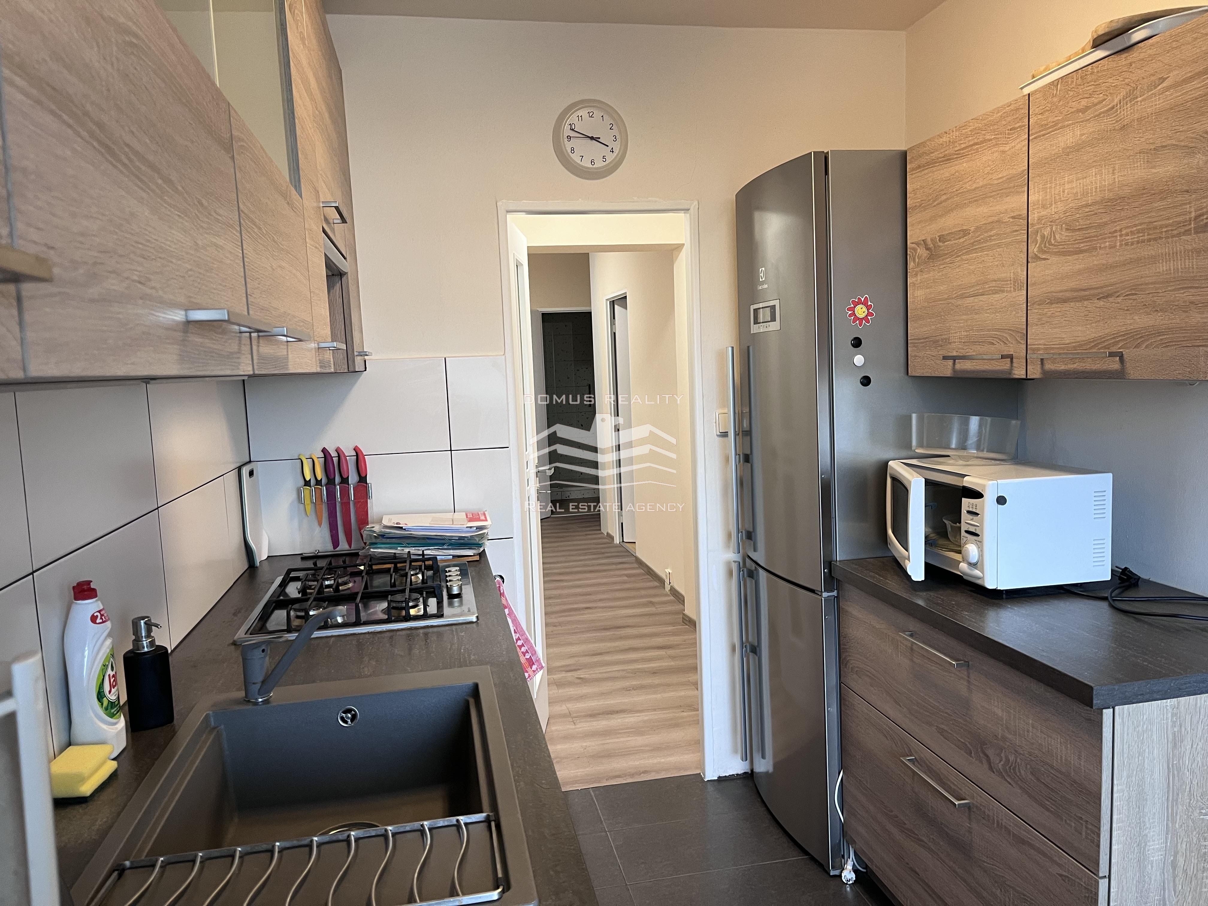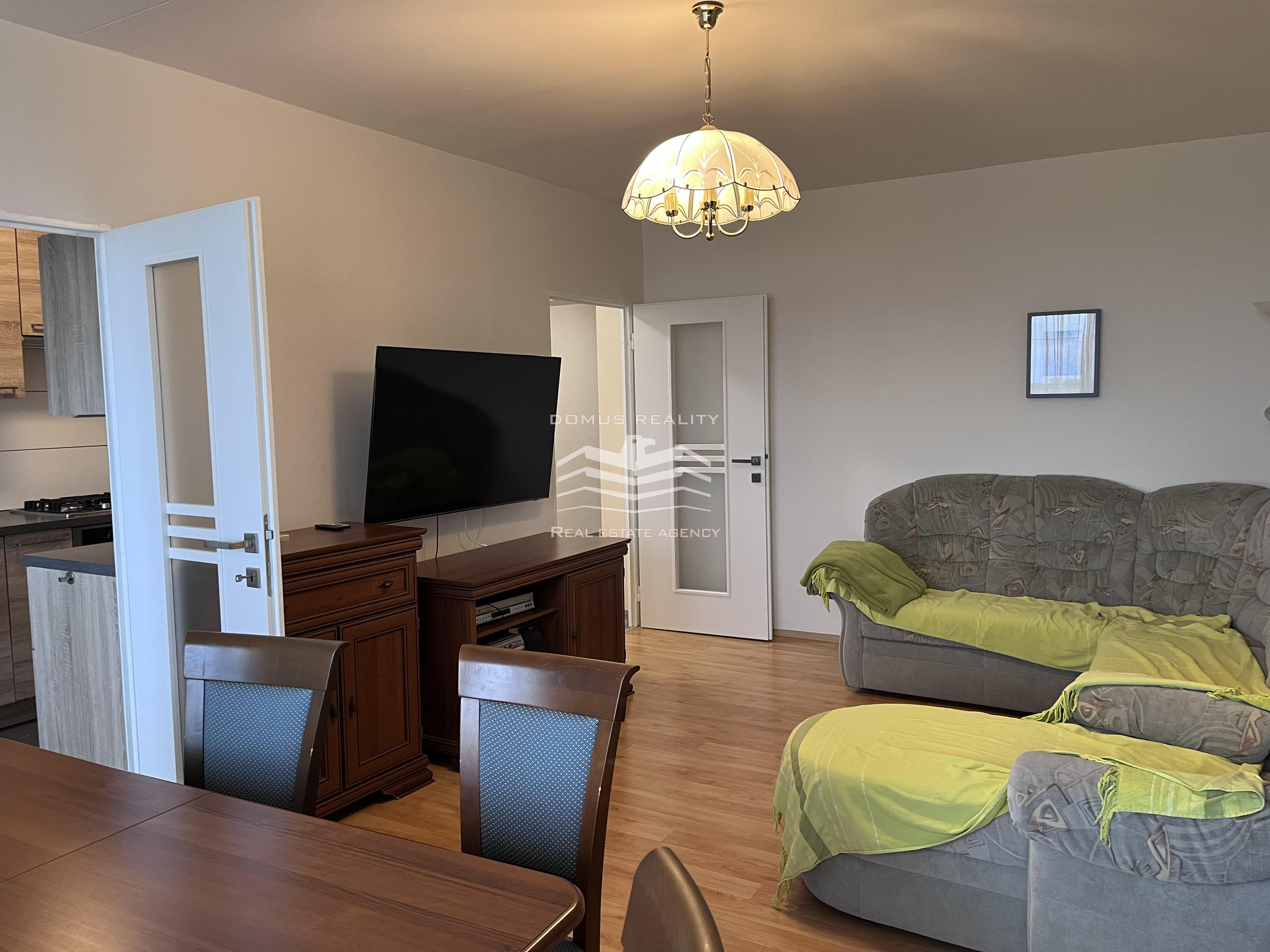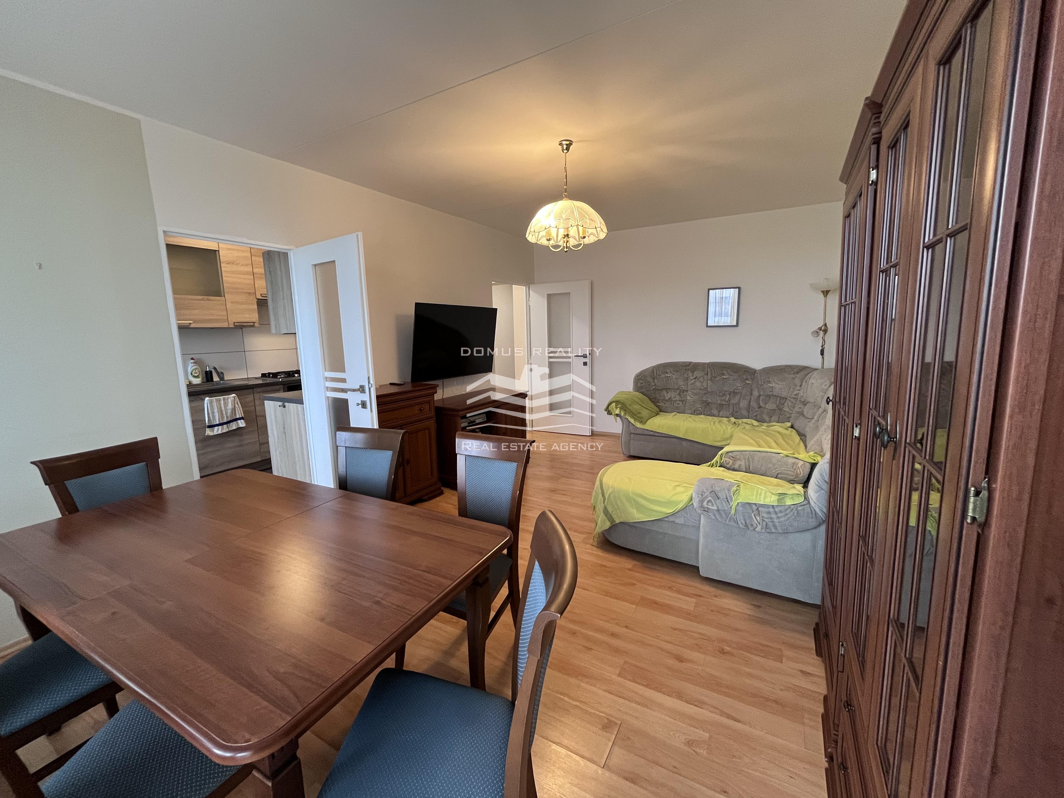 • Zařízený obývací pokoj a kuchyň s veškerým vybavením (sporák, trouba, lednice, myčka)